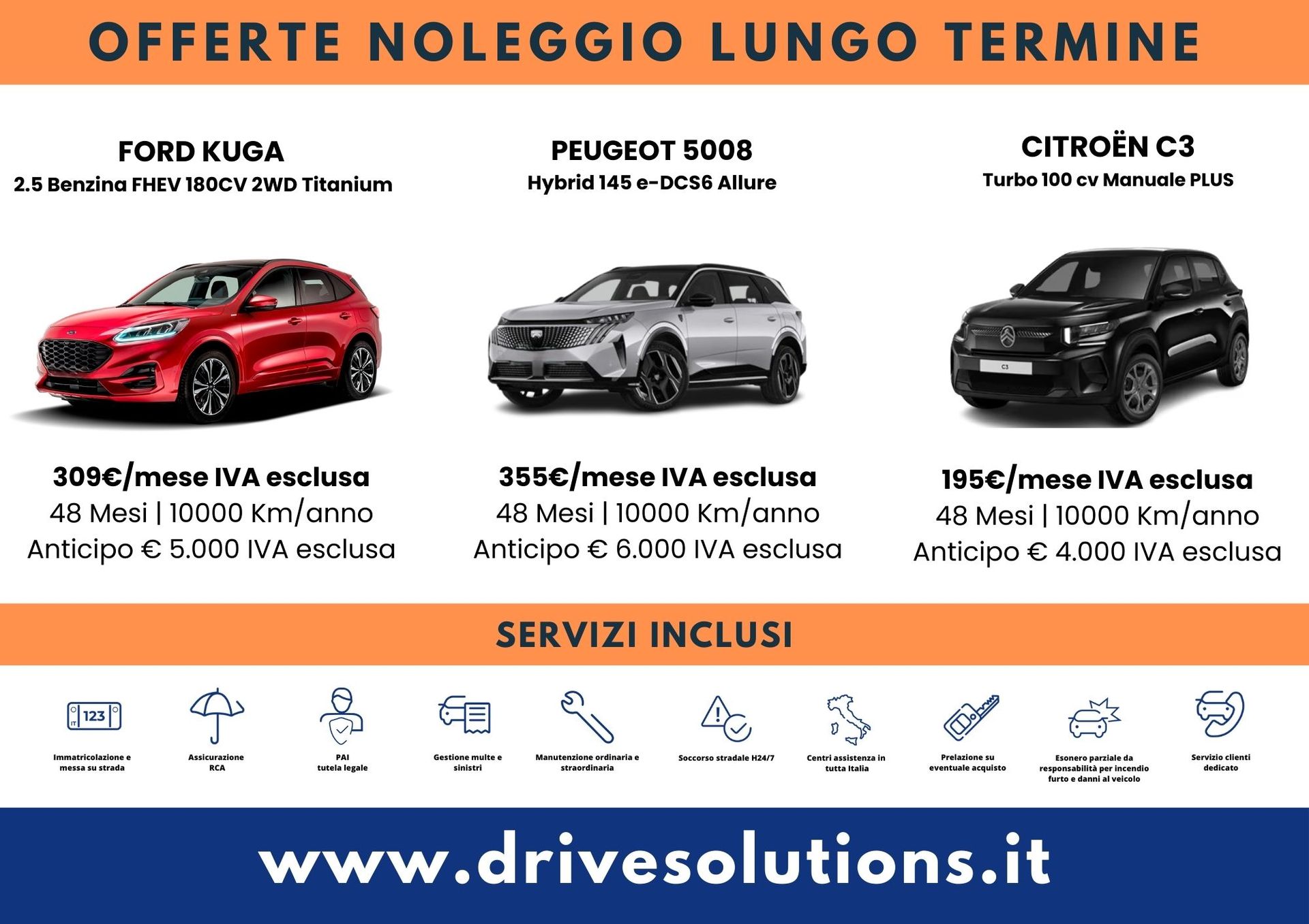 Autonoleggio DriveSolutions srl ti propone tante soluzioni di qualità, personalizzate a seconda delle tue esigenze professionali e del budget che hai a disposizione. Il nostro centro di noleggio auto e furgoni con sede a Lucca ha il veicolo giusto per te, disponibile sia a breve che a lungo termine, a prezzi davvero concorrenziali.